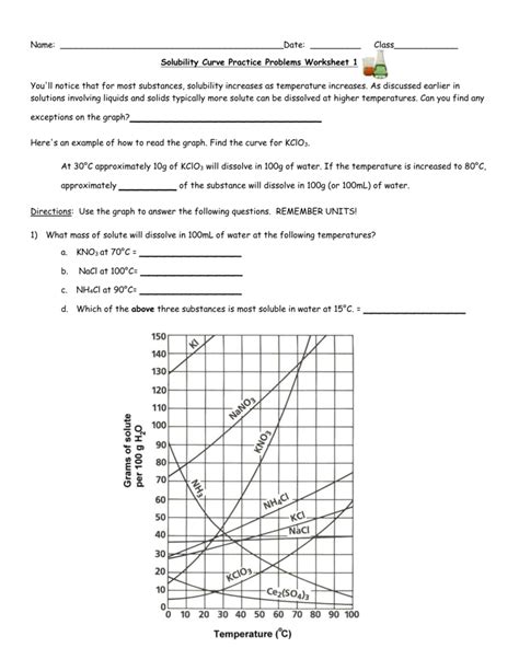 Solubility Curve Practice Problems Worksheet 1 Answer Key