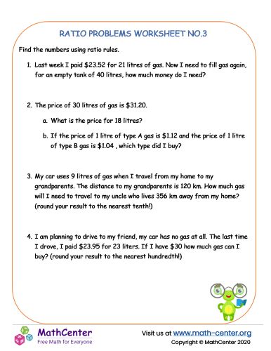 Proportions Word Problems Worksheets
